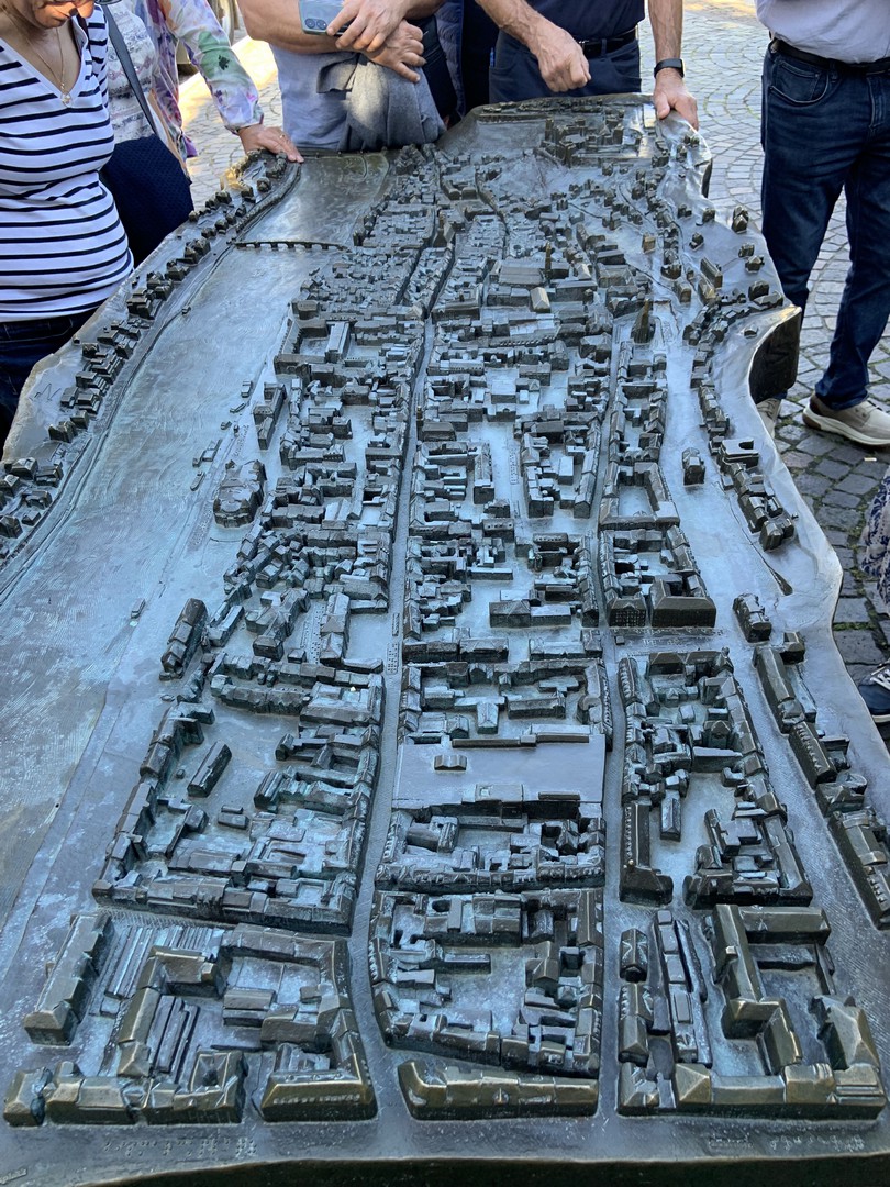 Après avoir assisté à un magnifique créneau de notre conductrice Céline sur le parking réservé aux autocars, le groupe se dirige à pied vers le restaurant "Kulturbrauerei". Menu typiquement local à base de saucisses et d’accompagnements. Un petit détour vers l’hôtel pour déposer nos valises et voici le groupe prêt pour la visite guidée de la vieille ville. Deux groupes sont constitués et déambulent dans la plus longue rue piétonne d'Europe la "Hauptstrasse", rue principale pittoresque d'une longueur d'1,8 km qui relie la ville ancienne à la ville moderne. Les 2 groupes ont pu flâner dans les petites ruelles bordées d'échoppes et de tavernes et s'attarder sur les places animées du centre historique.